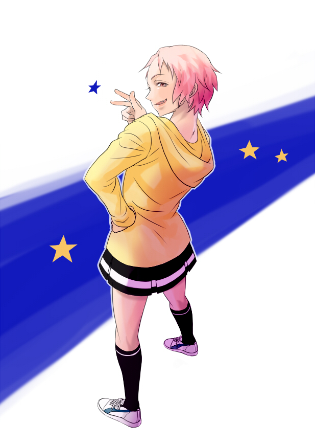 (※イラストクリックで大きい画像) 柴野くんの性別逆転バージョン。柴野 幸子(ゆきこ)さん。 男の柴野くんは白頭ですが、女子の柴野さんはピンク頭。 性格と京都弁は変わらずです。 ちなみに、九条さん(女子)のことは「お嬢」と呼びます・笑 彩色し終わってから気づいたのですが、学園指定のシャツ着てませんねこれ。 たぶんタンクトップかTシャツでも着ていると思われ。 九条さんの頭痛のタネがまた増えますね。