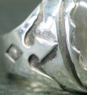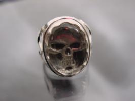 CRAZYPIG DESING :crystalscull ring \45,100(tax out) これもhideちゃん愛用のクレイジーピッグ。そしてこれもすごーーーーくパチが多い。ボーンハンドよりやや高めですが crystalの中に浮かぶドクロがなんだか不思議な感じで高級感はたっぷり。中のドクロがキースリングのドクロにそっくりな 感じがするのは気のせいでしょうか…(笑) |