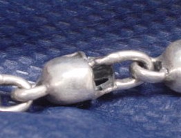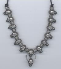 ![]() ![]() | ホンモノと見分けるコツは、まずスカルが7連であること、留める部分が人骨型になっていること、チェーンが溶接してあること、 スカルの歯の後ろが空洞になっていることです。 |
